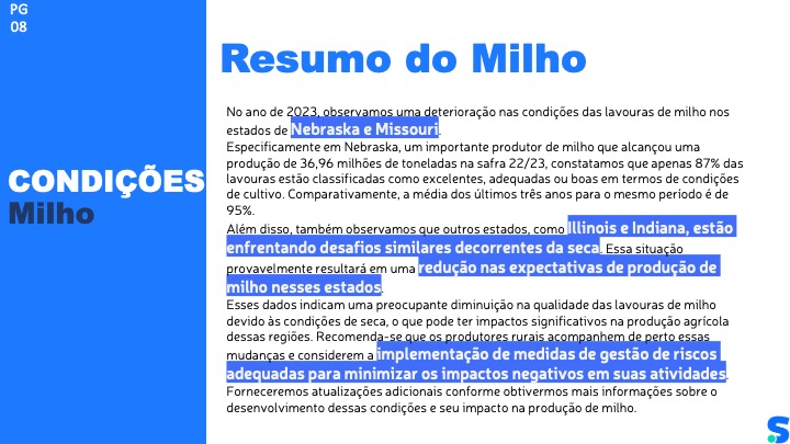 Assim, preparamos a compilação de informações anexa que trata das Condições das Lavouras nos Estados Unidos.